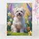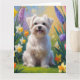 Cartão Pintura de Flores de Primavera com Cão Maltês