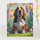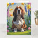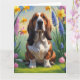 Cartão Pintura de flores de primavera do cão Basset Hound