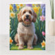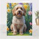 Cartão Pintura de Flores de Primavera do Cão Cockapoo