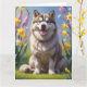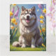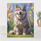 Cartão Pintura de flores de primavera do cão Malamute do