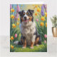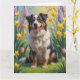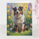 Cartão Pintura de Flores de Primavera do Cão Pastor Austr
