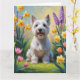 Cartão Pintura de flores de primavera do cão terrier Skye