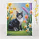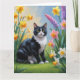 Cartão Pintura de Flores de Primavera do Gato Smoking