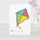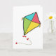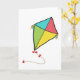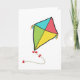Kite design mostra uma pipa desenhada manualmente voando no ar com cores geométricas, cauda de pipa e fitas. Para fãs voadores de pipa.