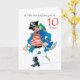 Um 10º Cartão de Aniversário divertido, com um pirata alegre e o seu papagaio num fundo branco, de uma pintura a aquarela de Judy Adamson. Você pode editar o texto do dentro, se desejar.
