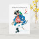 Um 9.º Cartão de Aniversário divertido, com um pirata alegre e o seu papagaio num fundo branco, de uma pintura aquosa de Judy Adamson. Você pode editar o texto do dentro, se desejar.