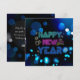 Cartões de Ano Novo Black & Blue Midnight Sparkle Neon Glow:
