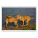 dois filhotes pitbull do nariz vermelho brincando ao lado do lago