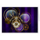 Aranha-do-galo feita de ouro e aço com relógios antigos decorados com engrenagens de ouro sobre fundo roxo, listrado, texturizado com lentes e engrenagens de latão. Estilo Steampunk.