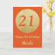 Cartão Placa aniversário de 21 anos cor de laranja e bril