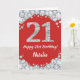 Feliz Cartão aniversário de 21 anos vermelho e prateado com nome personalizado. Para mais personalização, clique no botão "Personalizar" e use nossa ferramenta de design para modificar este modelo.