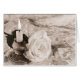 Um cartão de aparência antigo com uma vela e um rosa deitado sobre cetim e rendas. um cartão para você personalizar de qualquer forma.