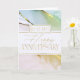 Esta é uma bela carta de 10 anos para funcionários, com um fundo de abstrato de cor verde, rosa e dourado e álcool verde-suave. O texto, 10 ANOS e ANIVERSÁRIO FELIZ, são colocados centralmente no design e colocados contra caixas de texto em branco. A fonte usada flui lindamente com uma camada de efeito de folha de ouro. NOTA: Todos os efeitos da folha de ouro são simulados no trabalho de arte. Não será utilizada qualquer folha de ouro na produção deste cartão. Design de Natalie Kinnear