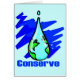 Grande gota d'água com a terra mapeada na gota e as palavras "Conservar", para fazer as pessoas pensarem sobre a conservação da água.