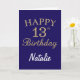 Cartão Placa de aniversário de 13 azul e Dourada brilhant