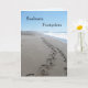 Levados na praia, no Condado de Marin, Califórnia, amantes e colegas adorarão esta carta com as lindas ondas do oceano e o céu azul para elogiar a longa trilha de pegadas através da areia. Dois solteiros percorrem a vida lado a lado. O cartão diz: Os muitos tesouros do oceano que decoram a costa são um testemunho de Deus enquanto ele dirige as ondas. Mas não há tesouro tão perfeito, nem um maior testemunho de Deus em si, do que a unidade que ele criou na sua alma e na minha. Você é o meu perfeito companheiro de alma. Feliz Aniversário. Poema de Elizabeth Williams