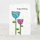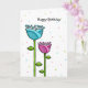 Cartão Placa de aniversário do Doodle Flowers azul-rosa