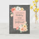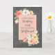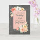 Cartão bonito e pensativo de saudação para o seu aniversário namorada com flores brancas cor-de-rosa pêssego, padrão de quadro chato rústico e texto de estilo manuscrito.