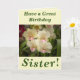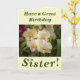 Quatro adoráveis flores de orquídeas fazem uma imagem de excelente para este cartão de aniversário floral para a Irmã. O texto pode ser facilmente personalizado conforme desejado.