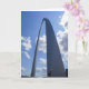 Cartão de saudação com o Gateway Arch é um monumento de 630 pés na Rua Louis, Missouri. Reprodução em aço inoxidável. É o mais alto arco do mundo, o maior monumento do hemisfério ocidental, e o edifício mais acessível do Missouri. Construído como um monumento à expansão ocidental dos Estados Unidos, é a peça central do Memorial de Expansão Nacional Jefferson e tornou-se um símbolo internacionalmente famoso de Ruas. Louis. O arco fica no local da Rua, fundação de Louis na margem oeste do rio Mississippi.