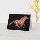 Trabalho de arte gráfico original com cavalo vintage correndo, processado em estilo colorido e pareado. O fundo preto faz esta imagem artística se destacar. O cartão é vazio de dentro para que você possa escrever suas cartas e notas pessoais.