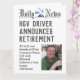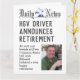 Cartão de aposentadoria na forma de jornal. Cartão de aposentadoria de driver HGV. Retirada do motorista. Sua escolha de nome e foto foram adicionadas como a pessoa que se aposenta.
