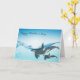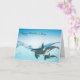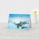 Cartão Elegante de saudação de Dia de as mães, com trabalho de arte gráfico de uma mãe e baleias assassinas de orca bebê perto da superfície da água. Personalize o texto preto para sua mãe.