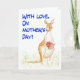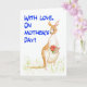 Um cartão de Dia de as mães com um canguru pintado à mão com um bebê na bolsa, dando-lhe um buquê de flores para o Dia de as mães. dentro de vazio para sua própria mensagem.