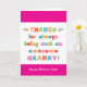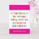 Você chama sua avó de vovó, não vovó. Imagine como a vovó ficará animada em receber um cartão de Dia de as mães endereçado especialmente a ela! Sua avó também vai adorar a divertida e colorida design baseada em texto que diz "Obrigados por ser sempre uma avó incrível! Feliz Dia de as mães!" Torne este cartão personalizável! Clique em "Editar Design", "Dentro Inferior/Direita: Texto e imagens", "Texto" e "Adicionar texto" para escrever a sua própria mensagem personalizada e personalizada no dentro da avó!
