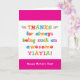 Você chama sua avó Yiayia, não vovó. (Yiayia significa avó em grego.) Imagine como a Yiayia ficará animada ao receber um cartão de Dia de as mães endereçado especialmente a ela! A tua cedência também vai adorar a divertida e colorida design com base em texto que diz "Obrigados por ser sempre uma Yiayia fantástica! Feliz Dia de as mães!" Torne este cartão personalizável! Clique em "Editar Design", "Dentro Inferior/Direita: Texto e imagens", "Texto" e "Adicionar texto" para escrever a sua própria mensagem personalizada no dentro Yiayia!