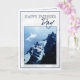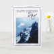 Um Design de Digitalbcon Images que apresenta um tema de cor azul ardente com uma imagem enquadrada de uma montanha de neve e glaciar de picos e formas personalizadas, padrões, estilos e fontes nesta Placa de Dia de os pais de um tipo. Esta imagem é derivada de uma foto tirada por Blair Wainman aka Digitalbcon Images Design. Este cartão também é preenchido com um design interior correspondente e uma saudação personalizável do Dia de os pais.