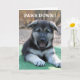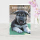 Esta carta de Dia de os pais engraçada mostra nosso adorável filhote de German shepherd, com suas patas grandes e orelhas grandes, falando com o Pai. As palavras na frente dizem: "Pata para baixo!" A mensagem dentro diz, "Você é o MELHOR PAI (Você nem fica zangado quando eu roubo suas meias.) Feliz Dia de os pais."