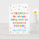 Você chama seu avô de PePaw, não vovô. Imaginem como o PePaw ficará entusiasmado por receber um cartão de Dia de os pais endereçado especialmente a ele! Seu pepaw também vai adorar este design brilhante e colorido do cartão de Dia de os pais que diz "Obrigados por ser sempre tão incrível PePaw! Feliz Dia de os pais!" Torne este cartão personalizável! Clique em "Editar Design", "Dentro Inferior/Direito: Texto e imagens", "Texto" e "Adicionar texto" para escrever a sua própria mensagem personalizada no dentro PePaw!