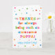 Você chama seu avô de Poppa, não vovô. Imaginem como Poppa ficará entusiasmado em receber um cartão de Dia de os pais endereçado especialmente a ele! Seu pai também vai adorar este design brilhante e colorido do cartão de Dia de os pais que diz "Obrigados por ser sempre um Poppa incrível! Feliz Dia de os pais!" Torne este cartão personalizável! Clique em "Editar Design", "Dentro Inferior/Direita: Texto e imagens", "Texto" e "Adicionar texto" para escrever a sua própria mensagem personalizada e personalizada no Poppa dentro!