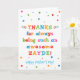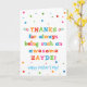 Você chama seu avô de Zayde, não vovô. (Zayde significa avô em iídiche.) Imagine como Zayde ficará animado ao receber um cartão de Dia de os pais endereçado especialmente a ele! Seu Zayde também vai adorar o design brilhante e colorido desta carta, que diz "Obrigados por ser sempre um Zayde incrível! Feliz Dia de os pais!" Torne este cartão personalizável! Clique em "Editar Design", "Dentro Inferior/Direita: Texto e imagens", "Texto" e "Adicionar texto" para escrever a sua própria mensagem personalizada e personalizada no dentro Zayde!