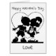 Placa de Feliz dia de os namorados personalizada. Cartão preto e branco com beijo de menino e menina no coração.