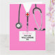 Design com tema médico criativo, com escovas cor-de-rosa. Editar texto para adicionar nome e credenciais médicas.