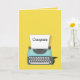 Uma nota de Parabéns digitou no papel em uma máquina de escrever manual de teal clássica em uma carta amarela brilhante!