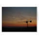 Um poster mostrando a grua de construção com o céu do pôr do sol como fundo