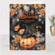 Cartão Placa de Halloween Floral Feliz de Abóbora Ghost