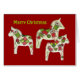 A design neste cartão é de cavalos de madeira talhados e pintados em tema de costura e colcha por Julia Morrill