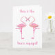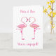 Rosa, foi amor à primeira vista! Estes elegantes flamingos do LeopardyNonsense são perfeitos para felicitar um casal feliz por seu noivado 💗 Você pode personalizar o cartão com seus nomes e mensagens na frente e dentro do cartão 🦩