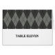 Cartão de Número de Tabela de Casamento Clássico e elegante de Argyle com um plano de fundo de padrão de diamante de cinza simples. Fácil de personalizar com seus detalhes de casamento. Para obter mais opções de personalização, clique no botão Personalizar Ti.