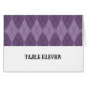 Cartão de Número de Tabela de Casamento Argyle Clássico e elegante com um simples fundo de padrão de diamante roxo. Fácil de personalizar com seus detalhes de casamento. Para obter mais opções de personalização, clique no botão Personalizar Ti.
