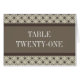 Cartão Placa de Número da Tabela de Latência do Rico bege