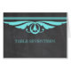Número de tabela de quadro deco elegante e chic com textura de quadro chalkboard em moda e um par de bordas giratórias de arte turquesa. Esta bela carta de mesa é perfeita para um casamento temático de arte deco de 1920. Fácil de personalizar, basta adicionar o(s) número(s) de tabela apropriado(s) no campo de texto fornecido. Clique em "Personalizar" para encontrar opções adicionais de personalização.