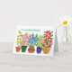 Uma placa de Parabéns florais bonito com uma fileira de potes de flores coloridas, de uma colagem de papel pintada à mão por Judy Adamson. O dentro é o vazio da sua própria mensagem e terei todo o prazer em mudar a saudação principal, a pedido, através da minha loja.
