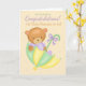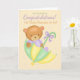Cartão de Parabéns de Gravidez Pais do Tempo de 1rua, pequeno cartão giro para desejar aos parabéns pais da rua no seu futuro e no novo pacote de alegria, Um pequeno urso sentou-se num guarda-chuva, todas as cores neutras que se misturam. Dover Pictura