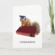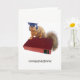 Um esquilo vestindo um boné de formatura azul se senta em um livro grande. Envie suas parabéns com este cartão divertido.