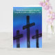 Fundo azul com três cruzes com Bíblia verso Segure a placa de Páscoa da lâmpada.